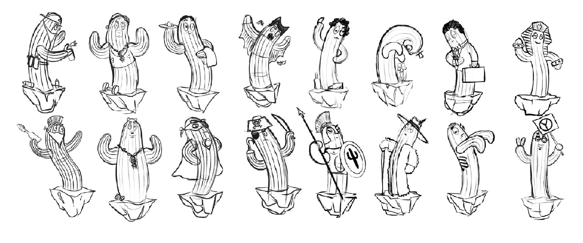 I started this journey in 2017 with a series of very clumsy sketches of humanized cacti. I felt somewhat attached to this character, but at the time I didn’t think I would take the concept any further.