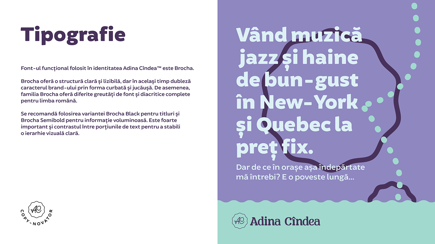 Pentru a fi siguri și de funcționalitatea și lizibilitatea textului, am creat o formulă tipografică simplă bazată pe două font-uri și am stabilit o ierarhie de folosire a acestora conform conținutului de text pe care îl reprezintă.
