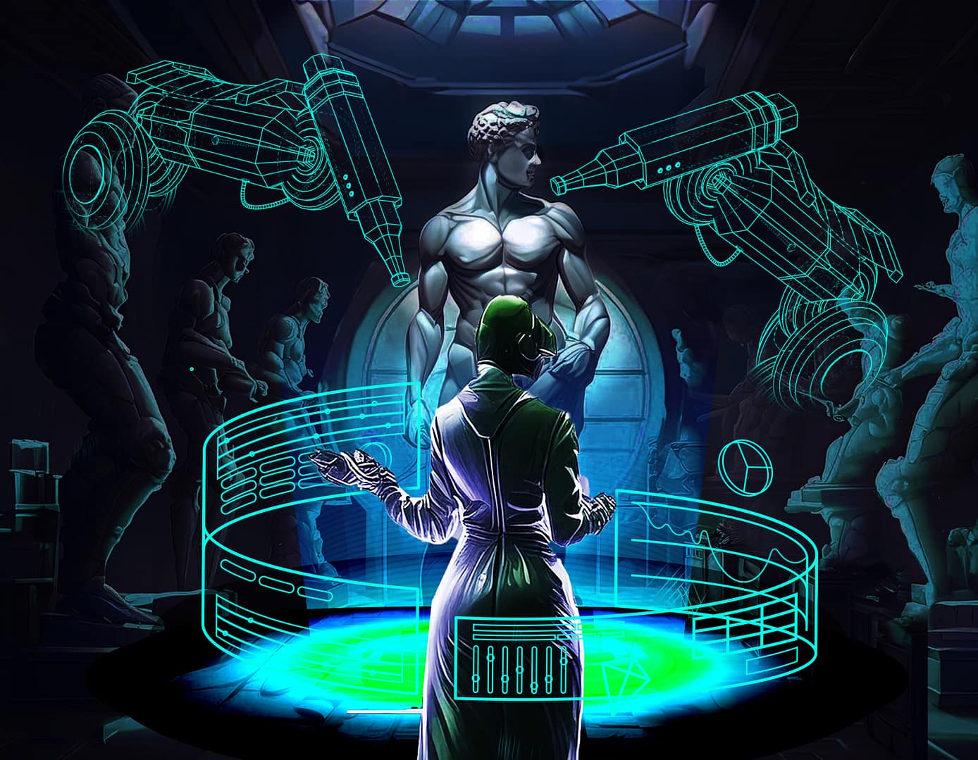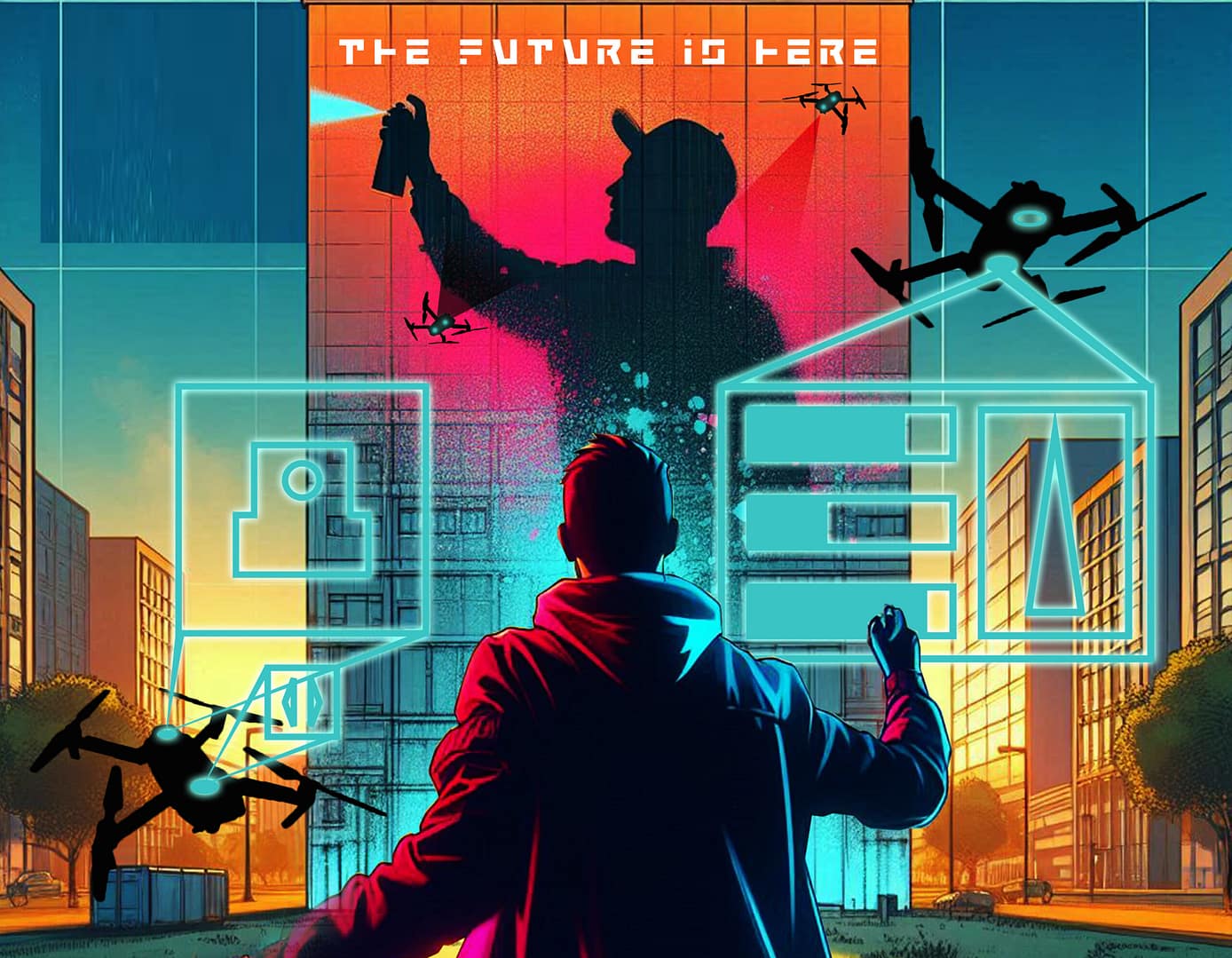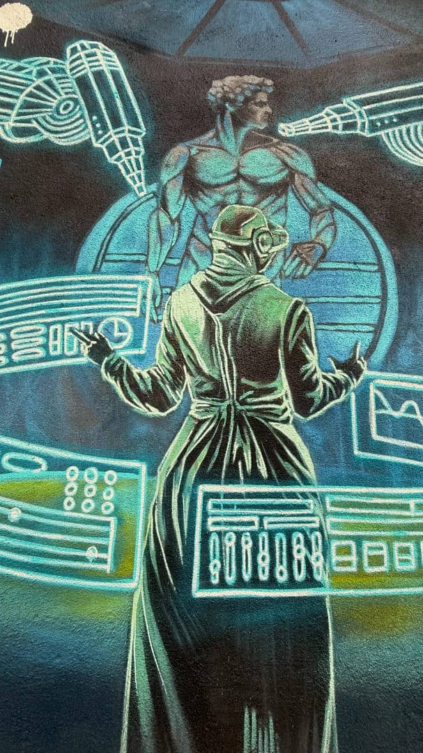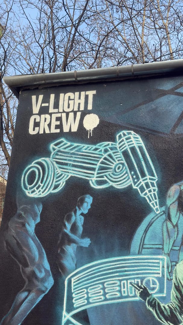 Iar pentru a dovedi că noi C.H.I.-urile vrem să fim prieteni cu Creative A.I.-urile (dar noi suntem încă maeștrii), fiecare artist va începe lucrarea cu ajutorul unui Creative A.I., însă va aduce aportul său personal pentru finalizarea și transpunerea acesteia pe perete. Facem asta prin imaginarea activităților creative în viitorul apropiat.