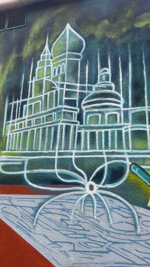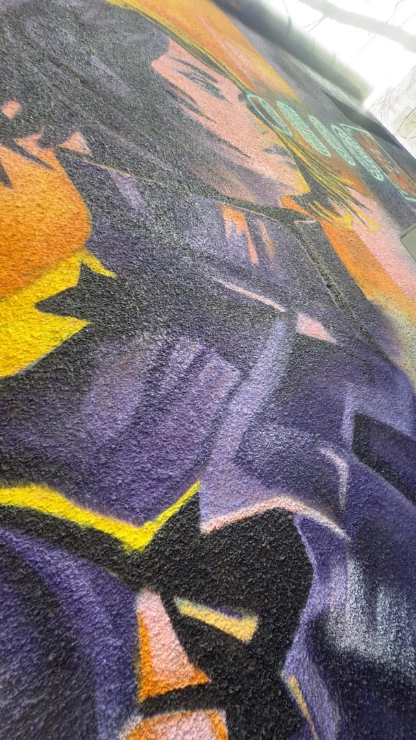 Asă că apoi am luat aceste variante, le-am tăiat în bucățele, am mai adăugat de la noi și am ajustat compozițional, cromatic și conceptual versiunile finale. Pe care apoi le vom transfera cu lavabilă și vopsea spray pe suprafața finală, cu finisările decise pe perete.