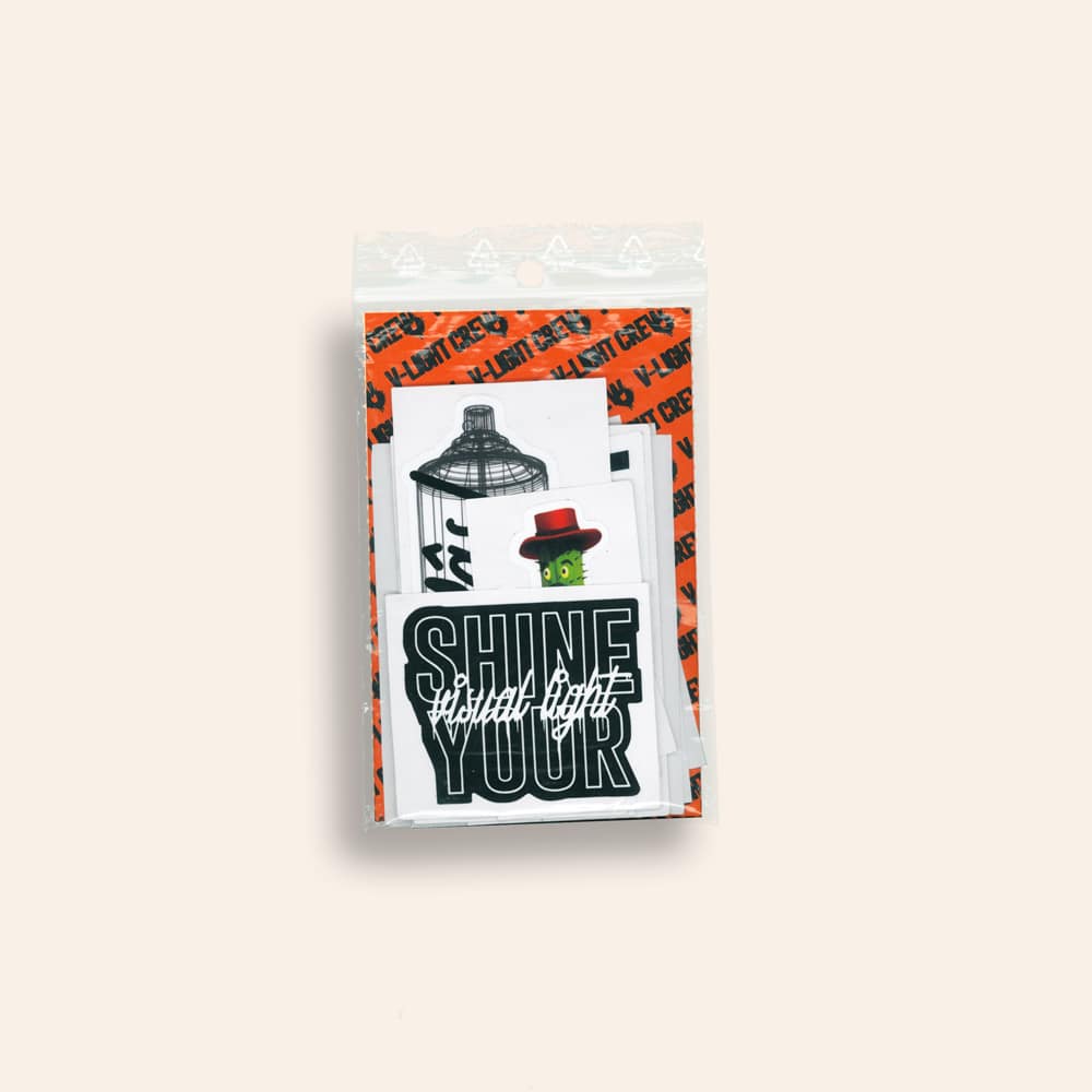 Selecție mini de stickere random din colecția Visual Light 2023. Colecția cuprinde design-uri individuale de la toți artiștii V-Light și stickere comune. Misiunea, cum scrie și pe ele, e de a bomb-ui cu ele spațiul înconjurător.
